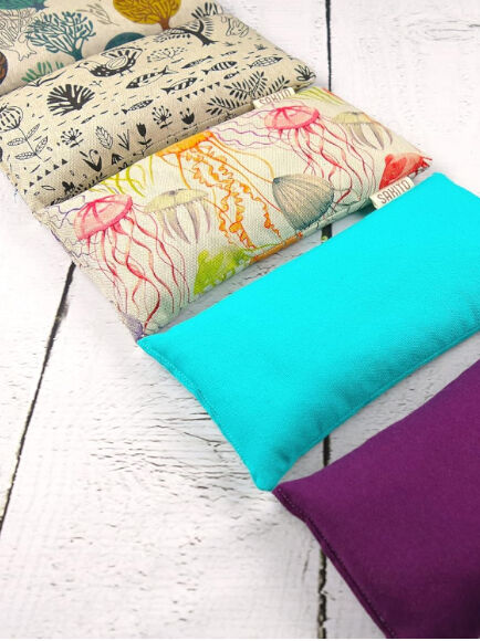 Relleno con semillas de trigo y flores de lavanda, se adapta perfectamente a las curvas del cuerpo y desprende un agradable aroma relajante.